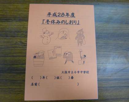 休み中の、過ごし方や宿題などについては、昨日全校生徒に配付しました「冬休みのしおり」をご覧ください。(右の写真)