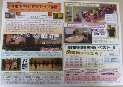 10日に、全校生徒に「今市中学校 元気アップ通信 3月号」を配付しました。