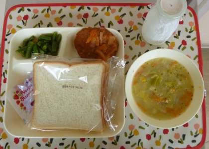 11日より給食が始まりました。本校は、昨年の9月から親子給食を実施しています。