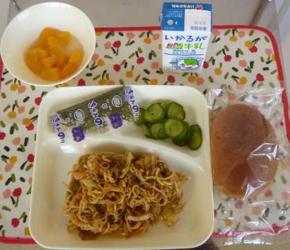 焼きそば きゅうりのしょうがづけ 黄桃缶