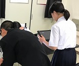 顕微鏡を使って観察し(上の写真)、タブレットを使って(真中の写真)撮影しました。水の中にもいろいろな生物が住んでいることを学びました。