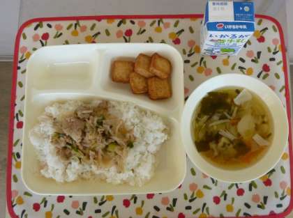 給食に登場する丼には、豚丼のほかに、カツ丼、親子丼、他人丼、牛丼、中華丼などがあります。