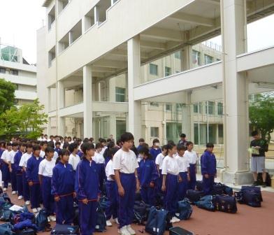 なお、上の左の写真は、自然の家での退所式、右の写真は学校での解散式のようすです。