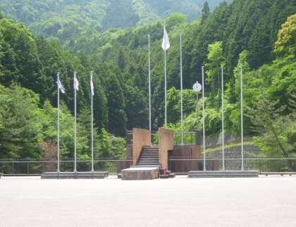 昼食のあと、班別ハイキングを行いました。真ん中の写真のところがスタートとゴールの地点です。各クラス6つの班に分かれて、写真にある山の中を1時間あまり歩きました。