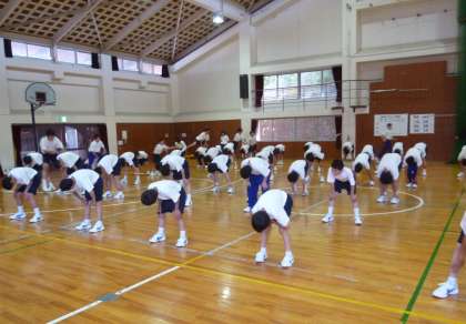 そのあとは体育館で「室内オリンピック」を行いました。内容は各クラスで考え、熱戦を展開しました。一番下の写真は「馬跳び競争」の様子です。