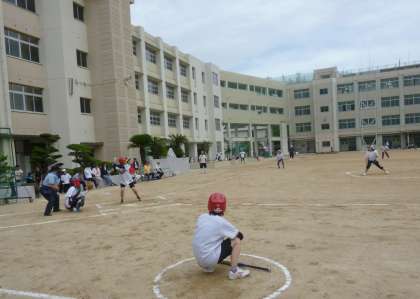 三校PTA親善ソフトボール大会が2日午後運動場で行われました。男女とも古市小学校・太子橋小学校、そして本校の3校が参加し、総当たりのリーグ戦を行いました。心配された雨は降らなかったものの、蒸し暑い中で熱戦が展開され、会員相互の親睦と健康増進を図ることもできました。