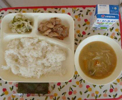 切り干しだいこんのゆずの香あえ 焼きのり ごはん 牛乳