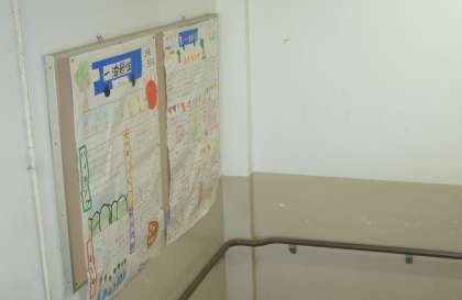 1年生は、一泊移住で学んだことを班ごとでまとめて、南館の東側の階段の踊り場などに展示しています。(上の写真参照)