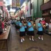商店街を行進しながら行進曲「ワシントンポスト」などを演奏しました。