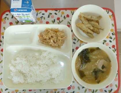 いわしてんぷら みそ汁 切り干しだいこんのいため煮