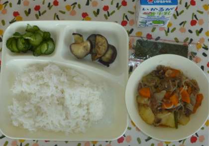 肉じゃが 焼きなすのみぞれかけ あっさりきゅうり