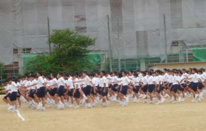 11日の午後、運動会にむけて2回目の全体練習を行いました。天候も何とかもちこたえ予定通りにおこなうことができました。