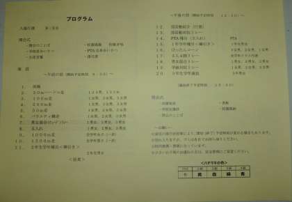 先日配付しました、運動会のプログラムに、2か所誤りがありましたので、本日(28日)、新しいプログラムを配付しました。ご迷惑をおかけして申し訳ございません。