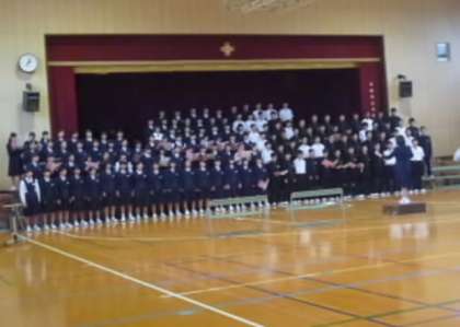 2年生は写真のように体育館で全体練習を行いました。全体としてよく声が出ていました。さらに練習を重ねてより完成度を高めていきましょう。