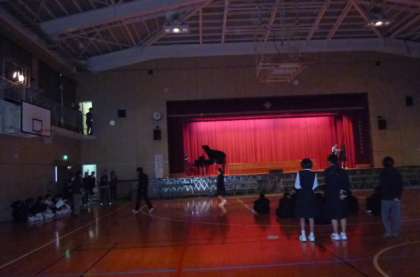 24日の午後、体育館で文化祭のリハーサルを行いました。司会や放送、照明、道具などの担当の生徒が、当日のプログラムに従って行い、全体の流れや注意点などを確認することができました。