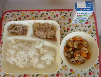 切り干しだいこんのしそ甘酢づけ ごはん 牛乳