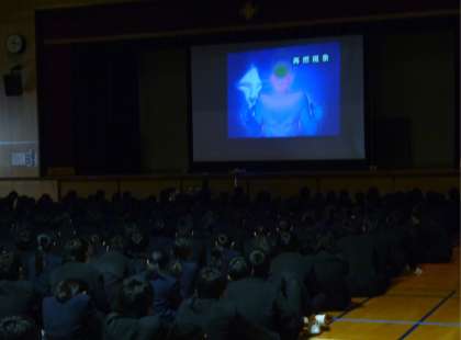 22日の2時間目に体育館で全校生徒を対象に「薬物乱用防止教室」を開きました。