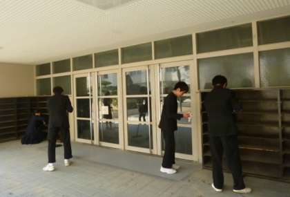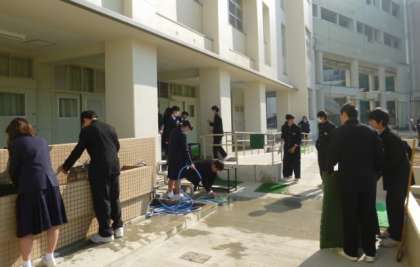 22日の4時間目に全校で大清掃をしました。ふだんはあまり清掃をしない場所も、しっかりと協力してきれいにしました。また、各教室の油びきもおこないました。
