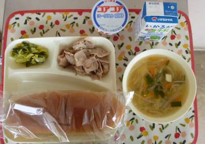 豚肉のオイスターソース焼き 糸寒天のスープ