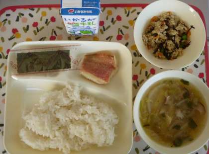 高野どうふのいり煮 焼きのり ごはん 牛乳