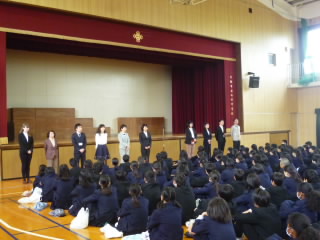 着任式では、新しく本校に着任した教職員を紹介しました。(上の写真参照)