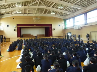 9日に、体育館で着任式と1学期の始業式を行いました。