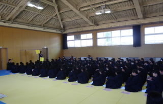 10日、1年生は1時間目に武道場でオリエンテーションを行いました。中学校生活で大切なこと、心がけるべきことなどを話しました。特に、自立する姿勢と自律する姿勢をしっかりと持つことを話ました。自立と自律、読みはおなじ「じりつ」ですが、どう違うのか、なぜ大切なのか、ご家庭でも考えさせてください。(上の写真参照)