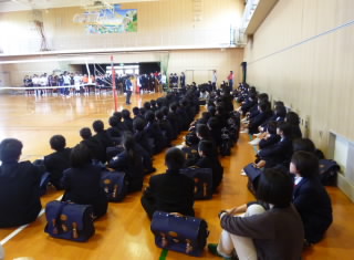 10日の6時間目に、体育館で部活動の紹介を行いました。1年生を対象にして、2年・3年生が各部の活動の様子を紹介しました。
