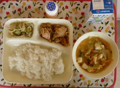 焼きとり みそ汁 きゅうりともやしのゆずの香りあえ