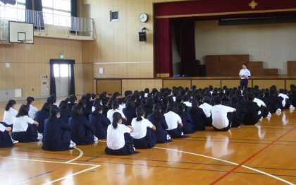 3年生は、27日の4時間目に体育館で修学旅行にむけての取り組みの予定を説明しました。