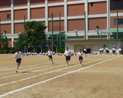 好天に恵まれ、少し暑さも感じるなかで、11日に全校で新体力テストを行いました。迅速に行動できたので、予定の時間より少し早く終了することができました。