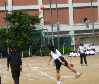 このうち、運動場では50m走(上の写真)とハンドボール投げ(下の写真)を行いました。