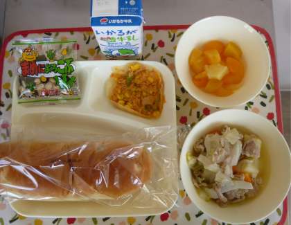 ミックスフルーツ(缶詰) パン(おさつパン) 牛乳