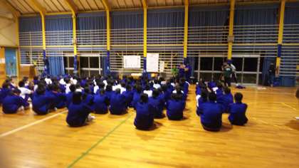 各種目に熱戦を展開して、室内オリンピックが終了しました。係の生徒から結果が発表されました。学年集会の時に表彰をします。