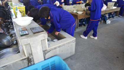 美味しく食べたあとは、協力して後片付けです。かまども、食器も、使用前よりきれいにします。