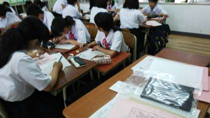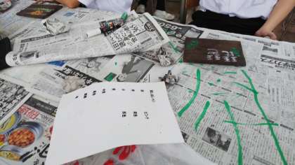 1年生は、30日午後クラスごとに、一泊移住の出来事を題材にした新聞づくりや、焼き板の制作をしました。