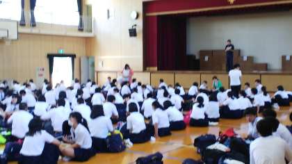 3年生は、修学旅行の出発を明日に控えて、4時間目に体育館で最後の事前指導を行いました。