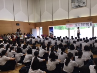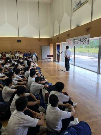 伊那市役所での入村式がはじまりました。生徒代表があいさつをしています。