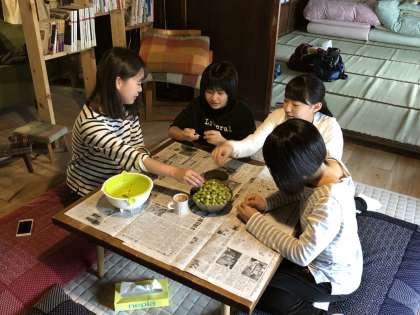 2日目の午前中も各農家で、農業体験を行っています。現地も雨ですが、生徒は熱心に作業しています。