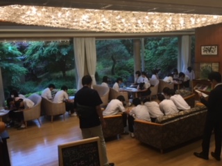 ロビーでの室長会議です。庭の風景も紹介しておきます。