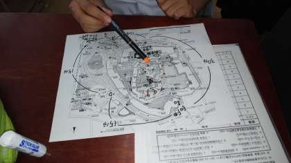 12日の放課後には、各班の班長が会議を開き、地図係の生徒が上の写真のように行程を確認していきました。