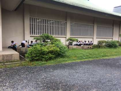 班ごとに昼食です。今のところ、傘なしで活動できています。