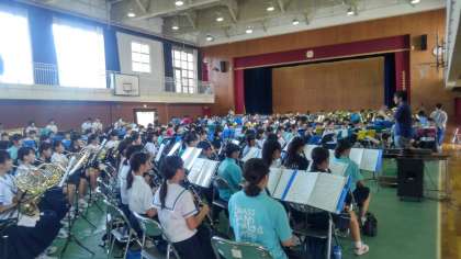 吹奏楽部は、1日に東安孫子中学校で行われた合同練習会に参加しました。8月17日予定のたそがれコンサートにむけての練習会で、6校が参加しました。