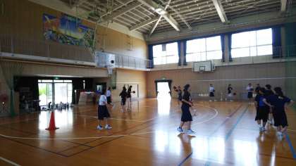 写真は、7日の練習風景です。見事にシュートが決まりました。