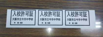 許可証はシールになっていますので、当日ご来校される場合は、一人一枚、必ず貼り付けておいてください。生徒の安全確保のため、ご理解とご協力をお願いいたします。