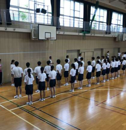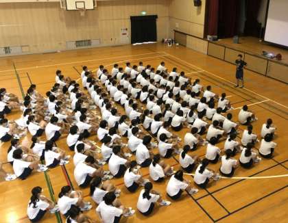 練習では、体育委員や学級代表の生徒が、夏休み中からコツコツと練習を重ねてきた成果を学年全体へ向け見事なお手本として披露しました。