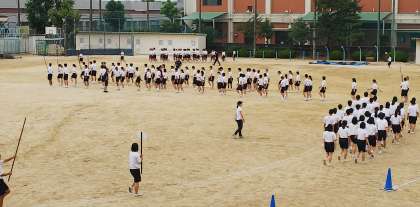 今回は、入場行進(写真参照)や、開会式・閉会式の流れを理解し、練習しました。