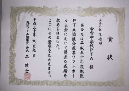 16日に行われた、平成30年度旭区PTA協議会親善ソフトボール大会で、本校の女子チームが準優勝しました。