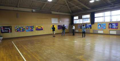 27日の放課後に、学級旗コンクールの投票を行いました。武道場に各クラスの学級旗を掲示して、教職員と代表の生徒が投票を行いました。