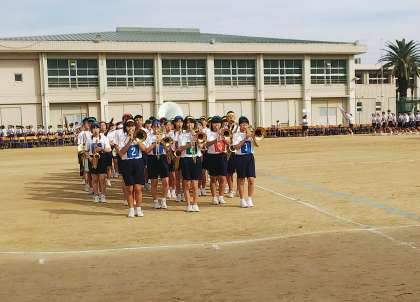 下の写真は、吹奏楽部の演奏です。入場行進曲は「ワシントンポスト」です。軽やかに演奏しています。